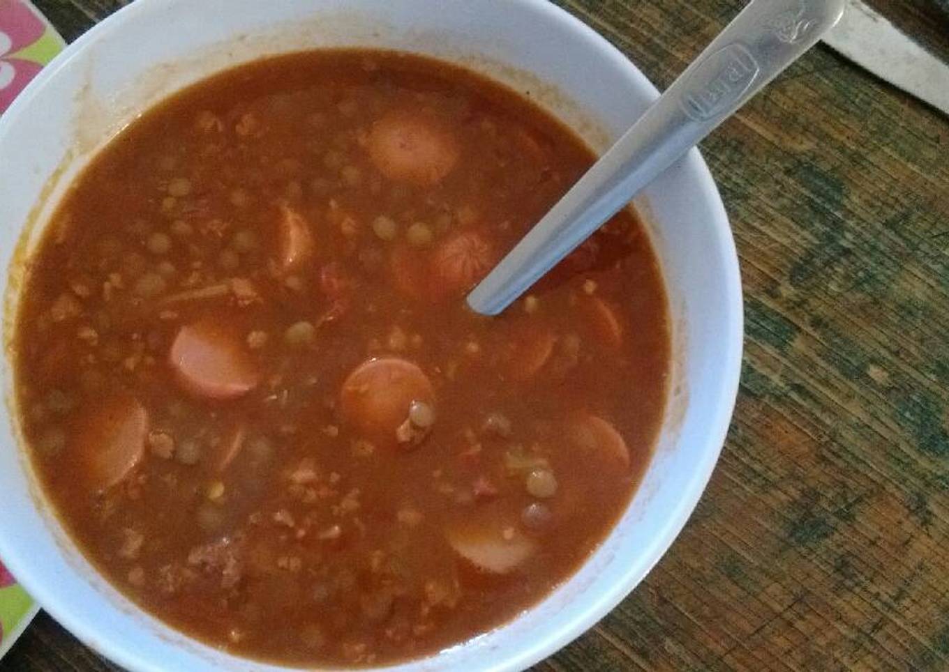 - Ya cocidas las lentejas agregar el chipotle con el jitomate y cebolla y todas las carnes frías que freímos anteriormente.
