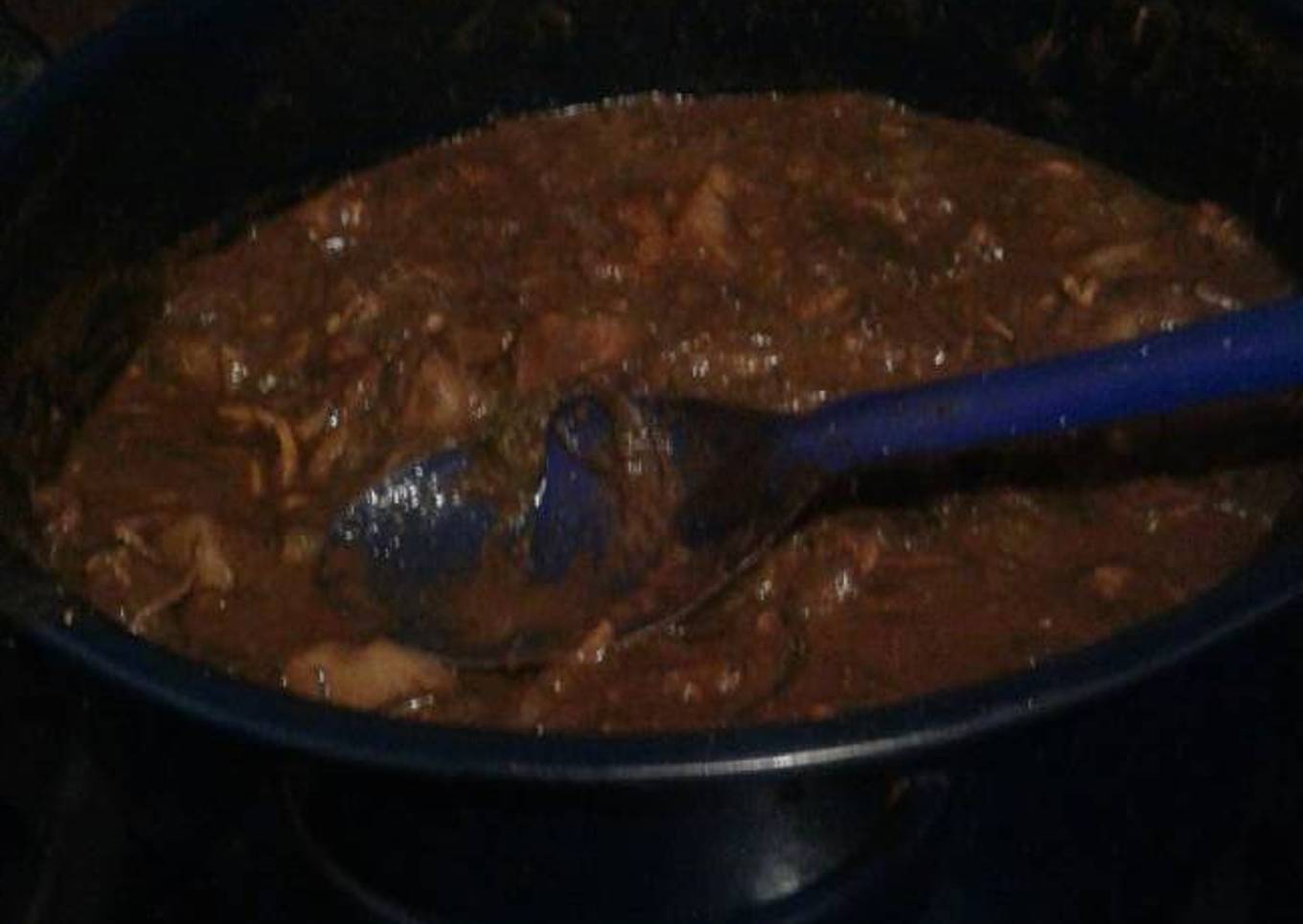 - Cuando se espese demasiado el mole agregamos un poco más de caldo o agua para aligerar la consistencia. Lo dejamos hervir por 10 o 15 minutos a fuego medio bajo sin dejar de mover y agregando líquido cuando sea necesario. Sazonamos con sal y pimienta al gusto.