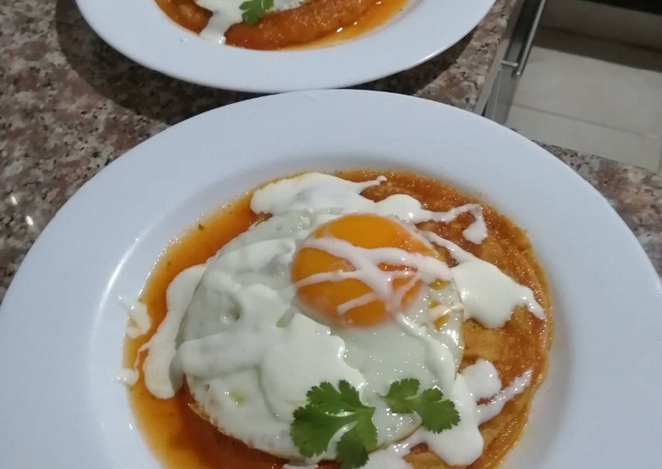 - En un comal o sartén colocamos las sincronizadas y una vez que el queso está derretido retiramos y las sumergimos en la salsa para bañarlas por completo. Freímos el huevo y lo colocamos sobre la sincronizada. Bañamos con un poco más de salsa. Ponemos crema al gusto y a comer se ha dicho.