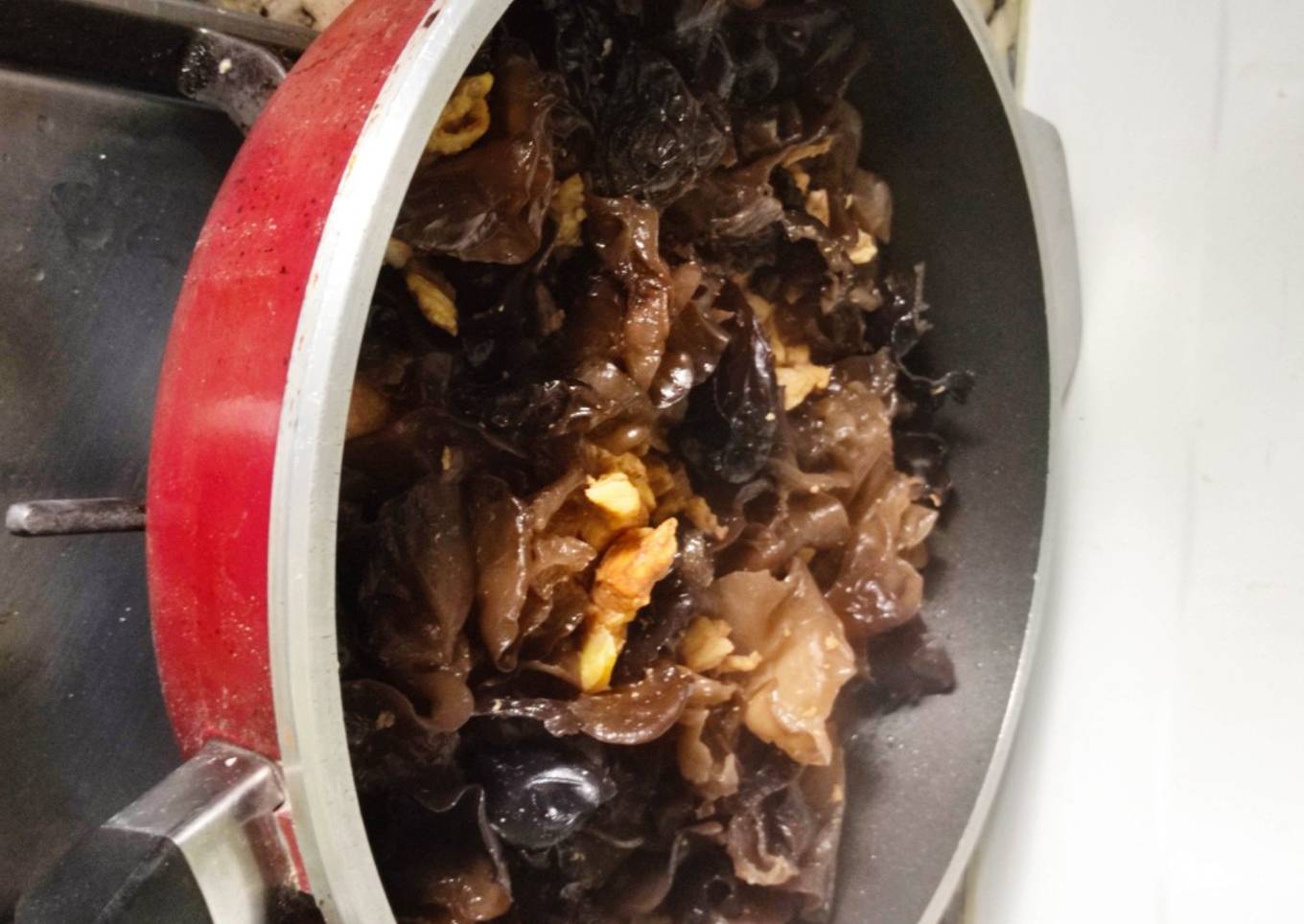 - Se coloca el hongo en agua por 30 minutos para que se hidrate. Aparte se hierve un poco de agua y se agrega los hongos por 4 minutos, luego se retira y se pica al gusto.