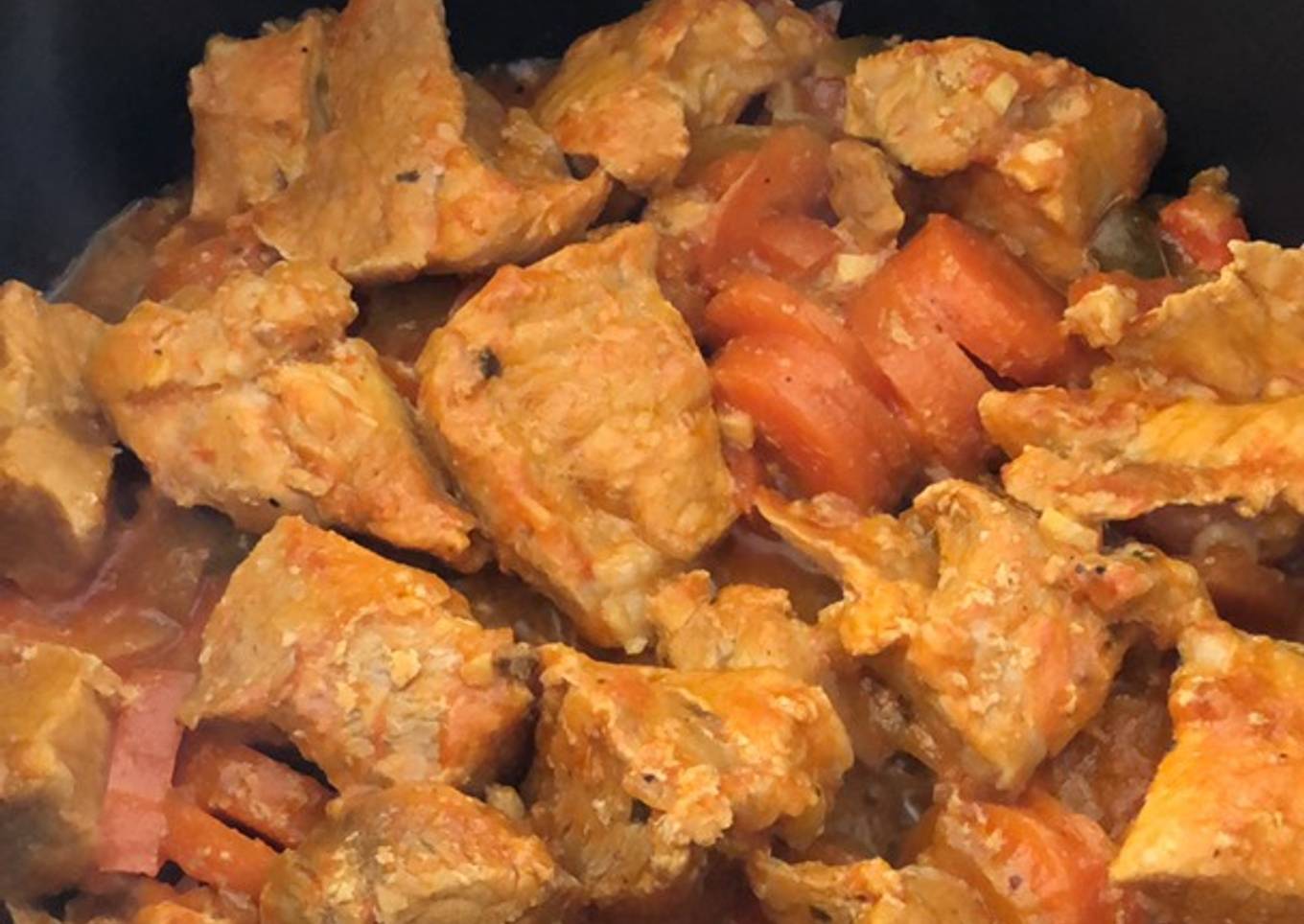 Trocitos de cerdo en salsa de tomate