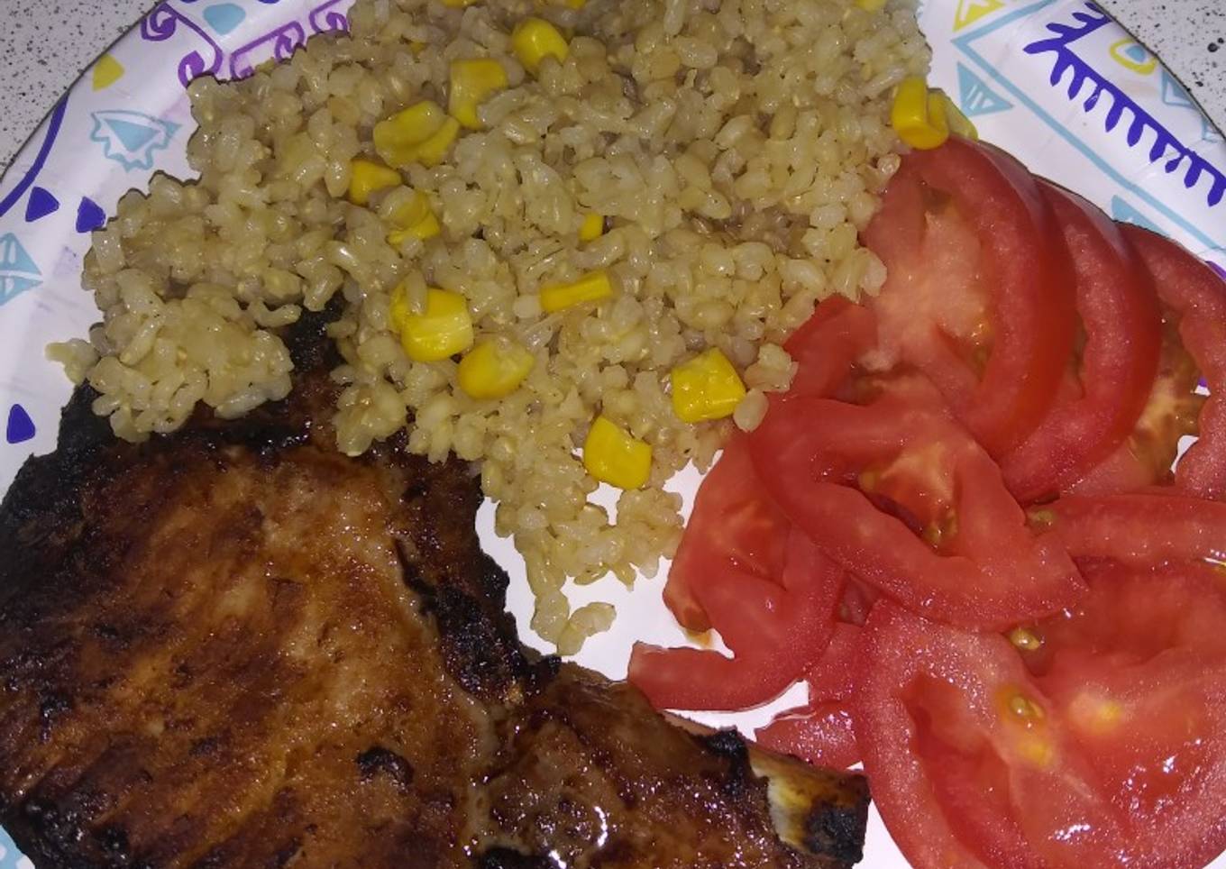 - Puede agregarle puré de manzana si lo desea. Esta vez lo serví con arroz integral y tomate.
