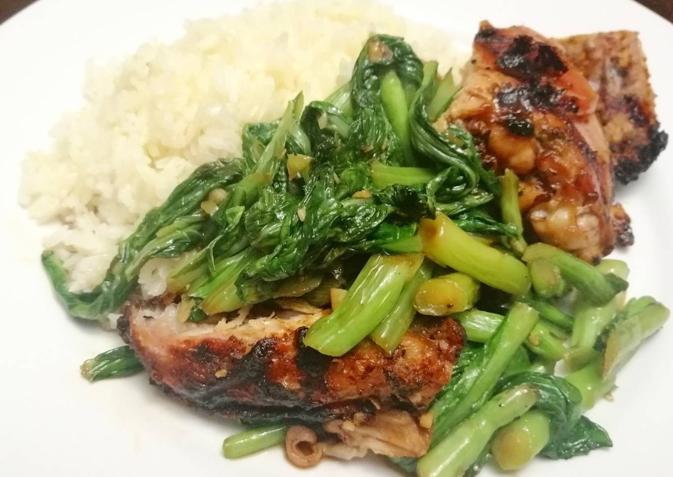 Pollo Asado & Hojas de Mostaza Salteadas con Ajos