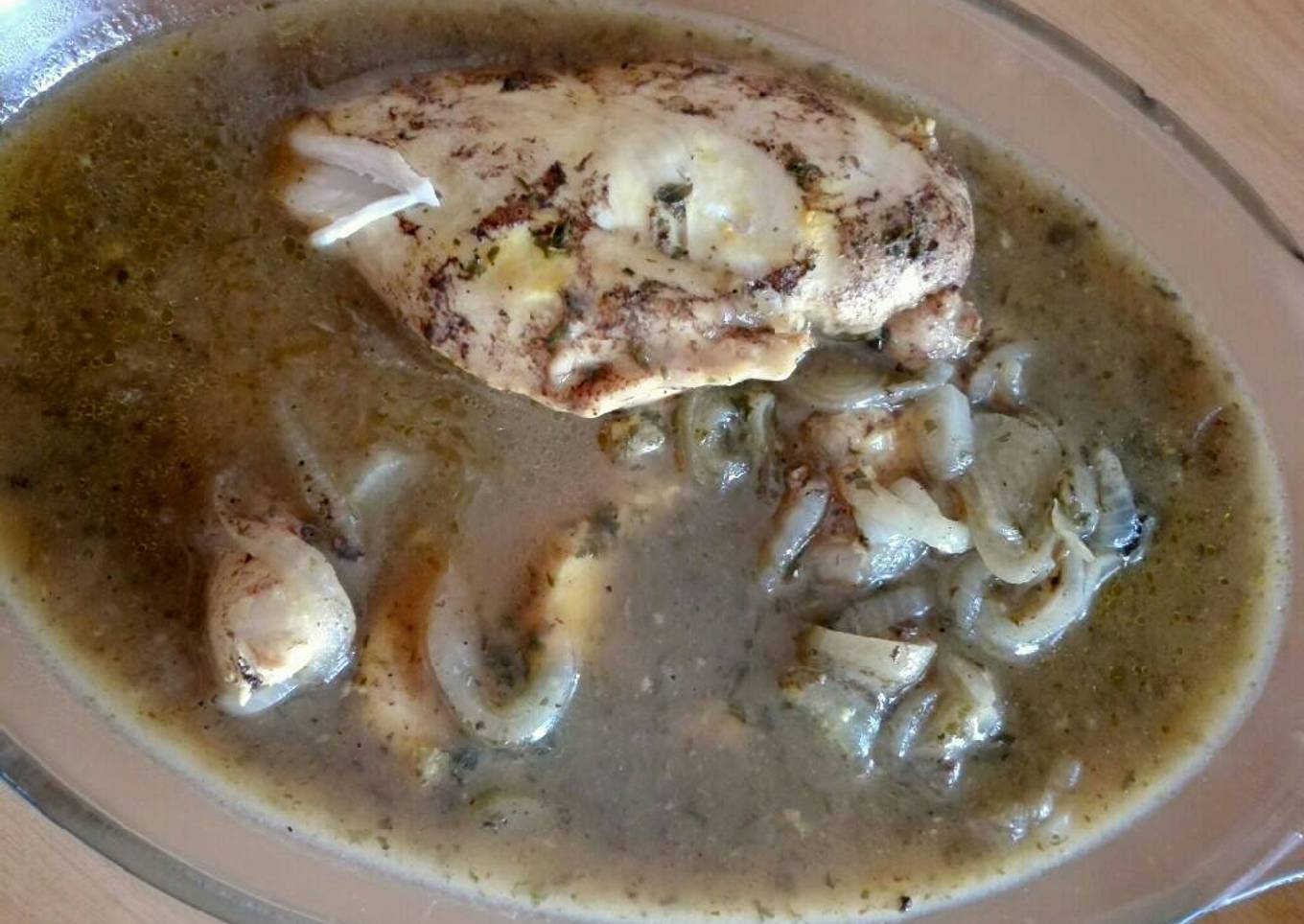- Se tapa y hornea durante 1 hora o hasta ver que el pollo esté bien cocido. Horno a 350°F