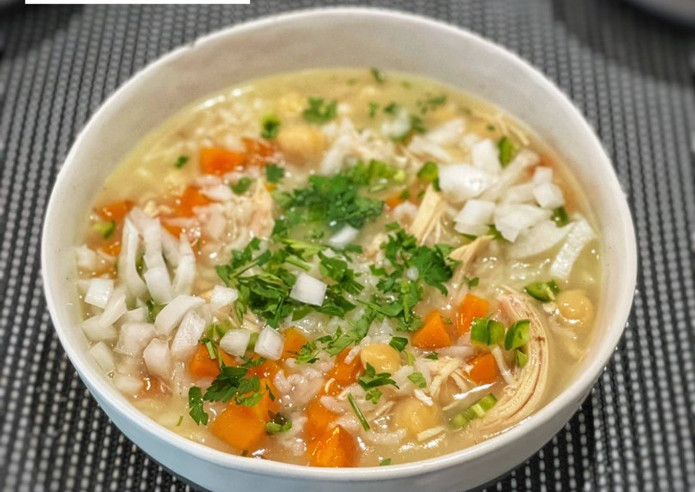 - Agregar la zanahoria, el arroz, los garbanzos y el caldo de pollo.