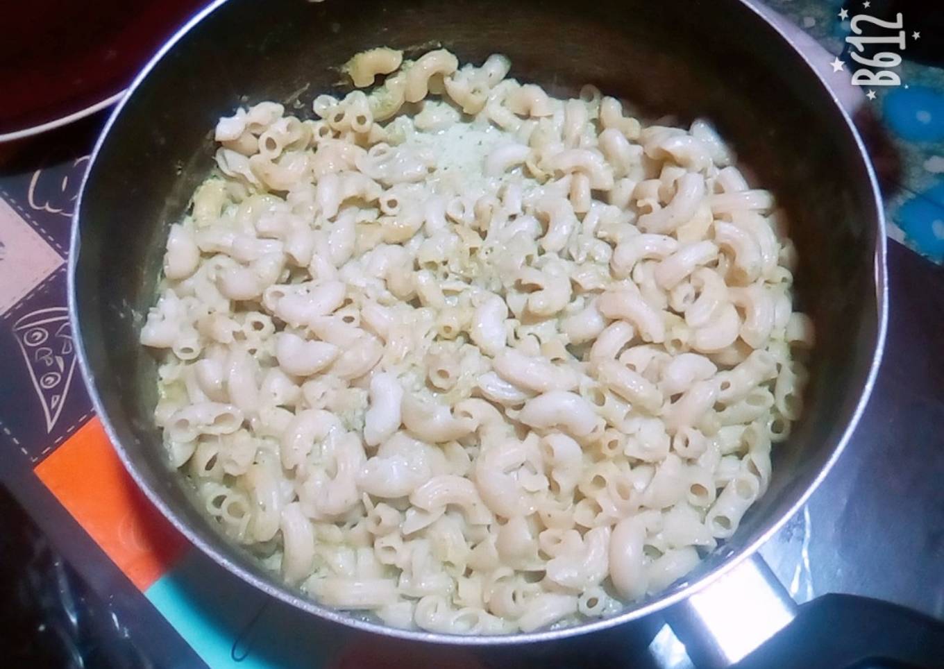 - En una cacerola, derretimos 1/2 barra de mantequilla y cocinamos en ella el licuado que preparamos. Lo dejamos hervir. Una vez hervido, le añadimos los coditos que escurrimos y revolvemos muy bien para que se adhiera la salsa.